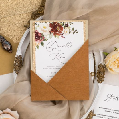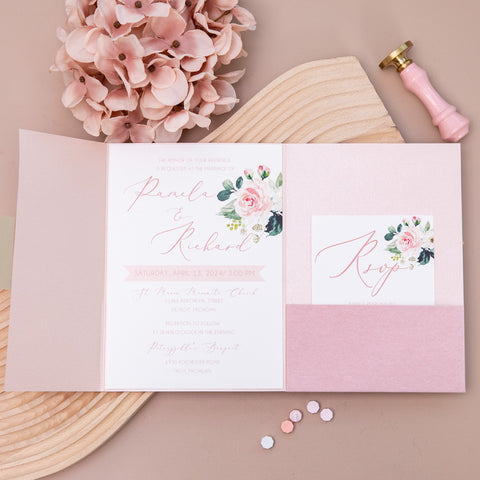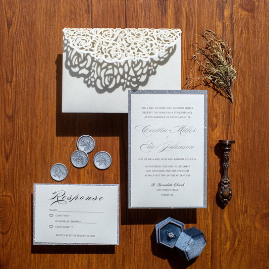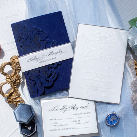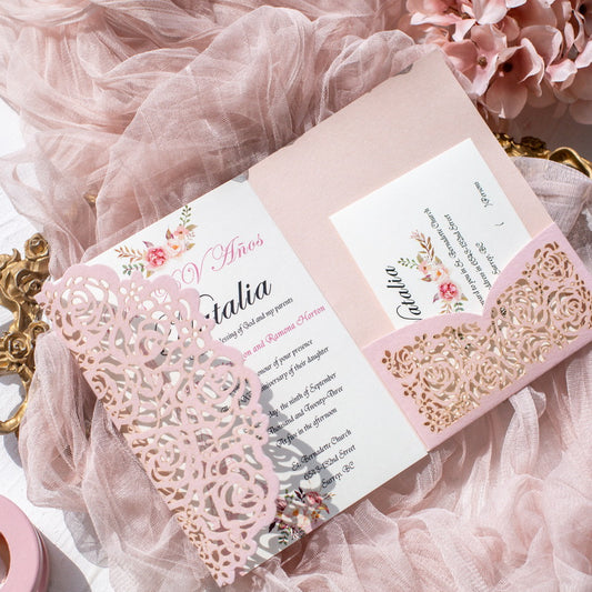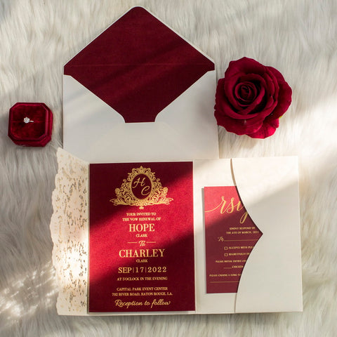 Chic Integrated Pocket Laser Cut Velvet Invitation
