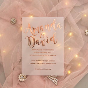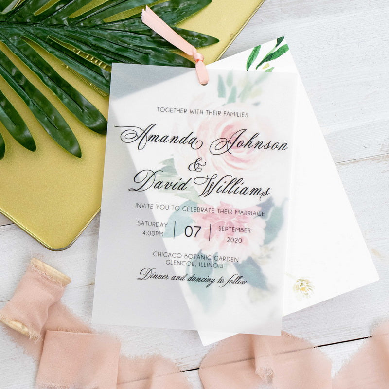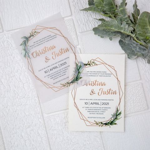 Modern Custom Calligraphy Foil Flat Vellum Invitation