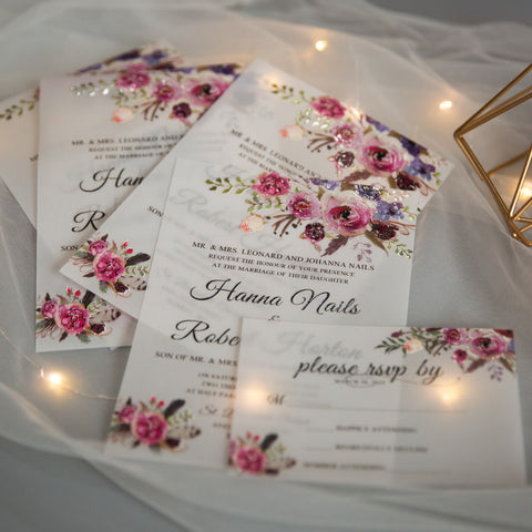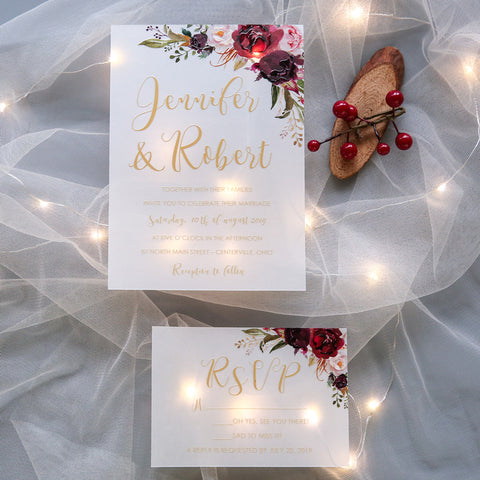Burgundy Floral Deluxe Flat Vellum Invitation