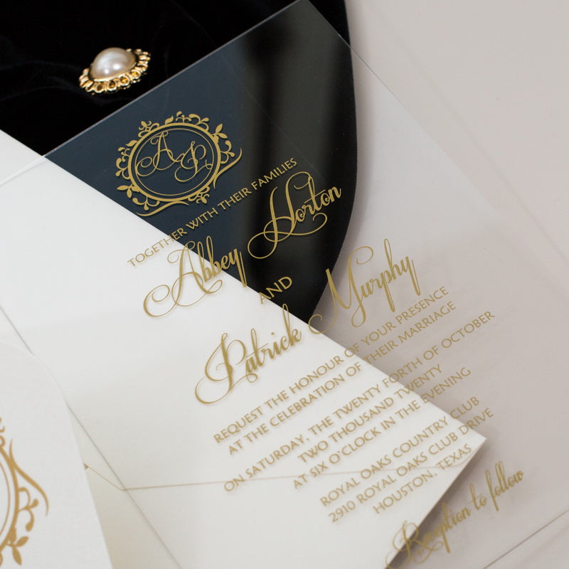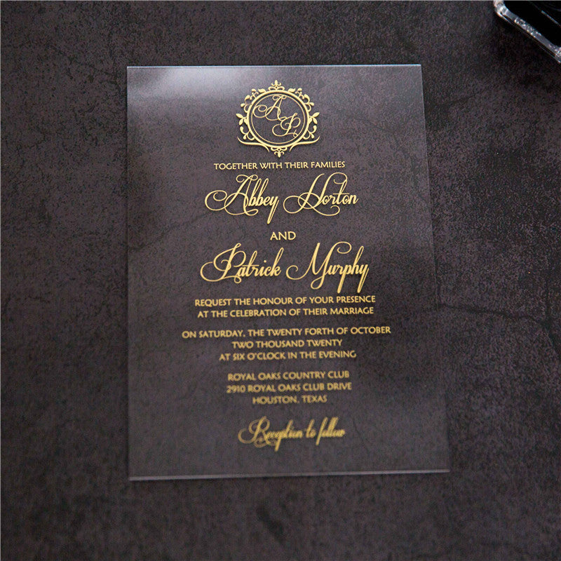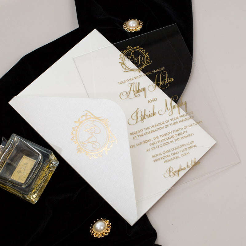 Gold Monogram | Clear Acrylic Wedding Invitation | TWEACR08