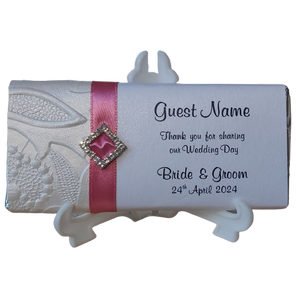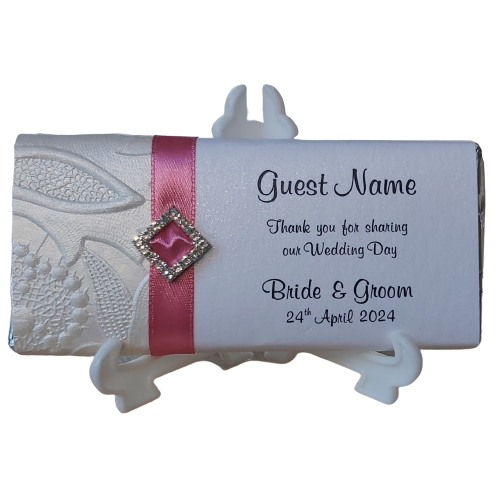 All of our bars are fully customisable including text and font options. Order straight from our pictured bars or select the 'personalise colours to match my theme' and we'll help you customise your bars from our huge range of papers, ribbon, embellishments and more!