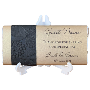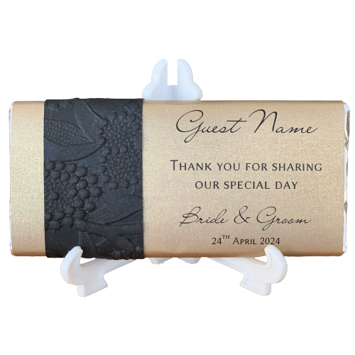 All of our bars are fully customisable including text and font options. Order straight from our pictured bars or select the 'personalise colours to match my theme' and we'll help you customise your bars from our huge range of papers, ribbon, embellishments and more!