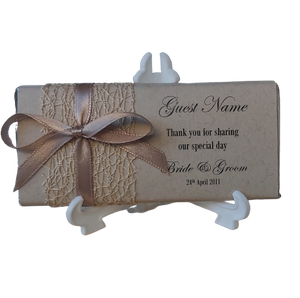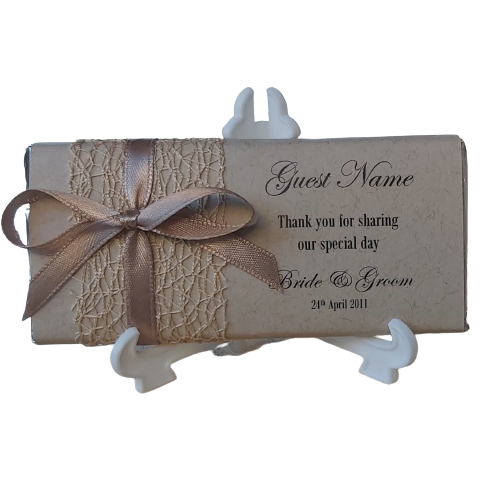 All of our bars are fully customisable including text and font options. Order straight from our pictured bars or select the 'personalise colours to match my theme' and we'll help you customise your bars from our huge range of papers, ribbon, embellishments and more!