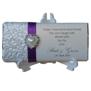 All of our bars are fully customisable including text and font options. Order straight from our pictured bars or select the 'personalise colours to match my theme' and we'll help you customise your bars from our huge range of papers, ribbon, embellishments and more!