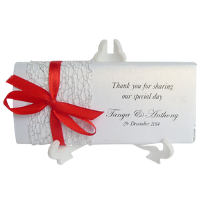 All of our bars are fully customisable including text and font options. Order straight from our pictured bars or select the 'personalise colours to match my theme' and we'll help you customise your bars from our huge range of papers, ribbon, embellishments and more!